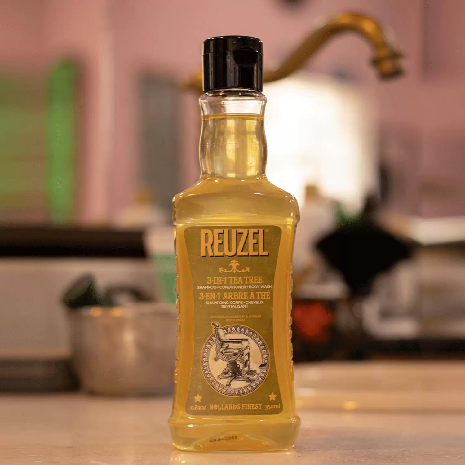 REUZEL „3 in 1 Tea Tree Shampoo“ daugiafunkcė priemonė – tai šampūnas, kondicionieirus ir kūno prausiklis viename. Priemonė švelniai valo, ramina odą ir intensyviai drėkina, todėl puikiai tinka kasdieniam naudojimui. Dėl savo daugiafunkciškumo tai nepakeičiamas produktas sporto salėje, kelionėse ar tiesiog tiems, kurie nori supaprastinti savo kasdienę rutiną.